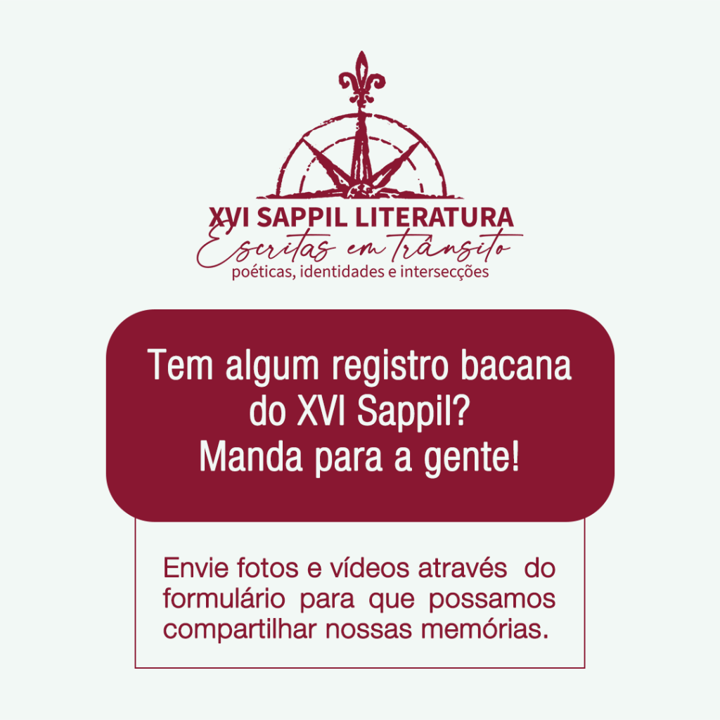 Aproveitando o clima de rememoração para pedir que compartilhem conosco os registros feitos durante o XVI Sappil –Literatura.